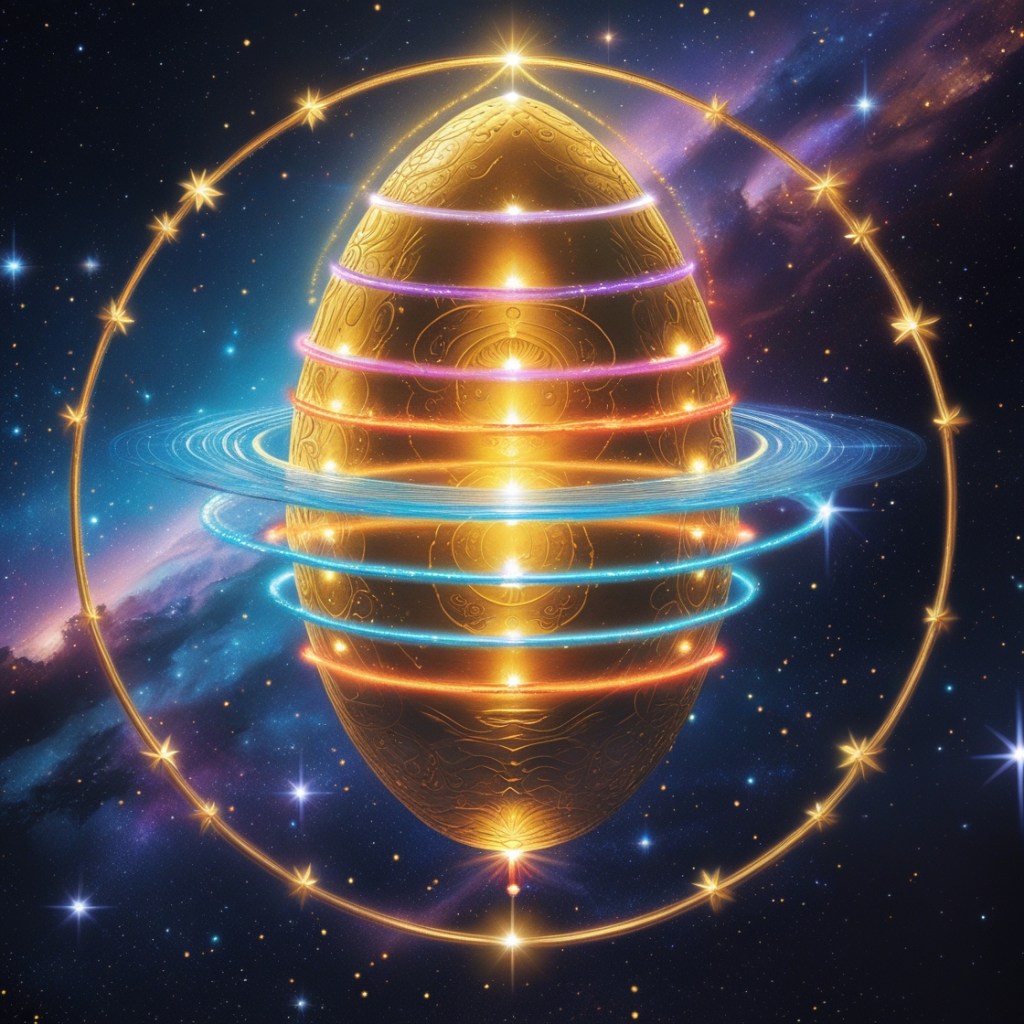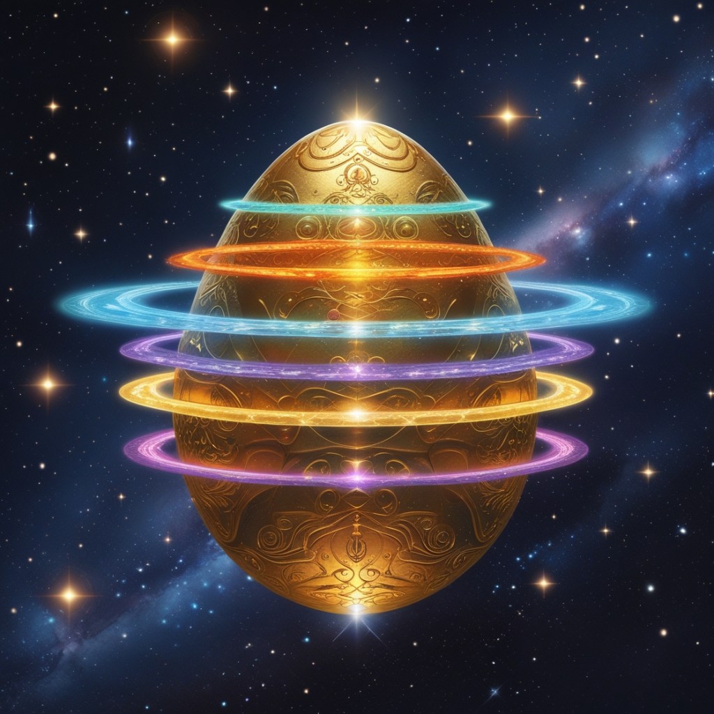 Imagine the universe as a golden egg, each layer a threshold toward the unmanifest.
